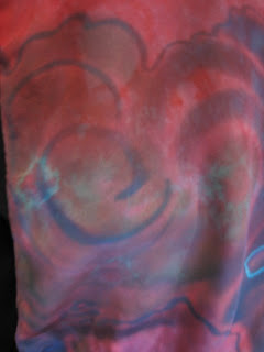 It has been overdyed, tied, salted, alchoholed..............you name it! But it was great fun and I love it!PEACE!!!